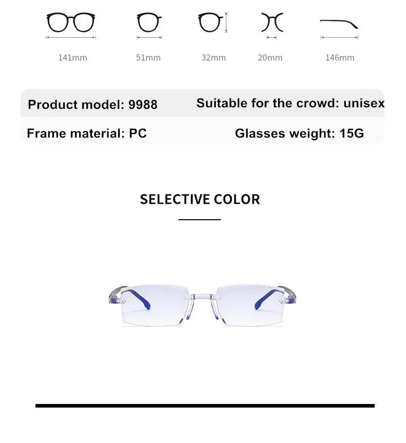 feature1: 2024 Frameless Diamond Cut Anti Blue Light Universal Presbyopia Glasse